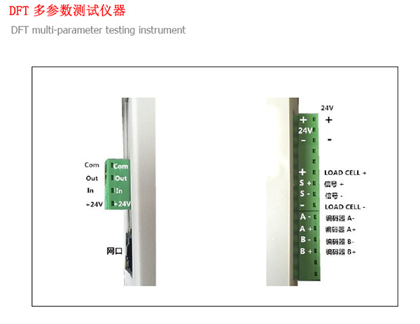 以太網口支持 TCP 傳輸。DFT儀器做為服務器。傳輸數據格式 +0012.3+0.0345\r.+0012.3 為力測量值, +0.0345 為長度值。